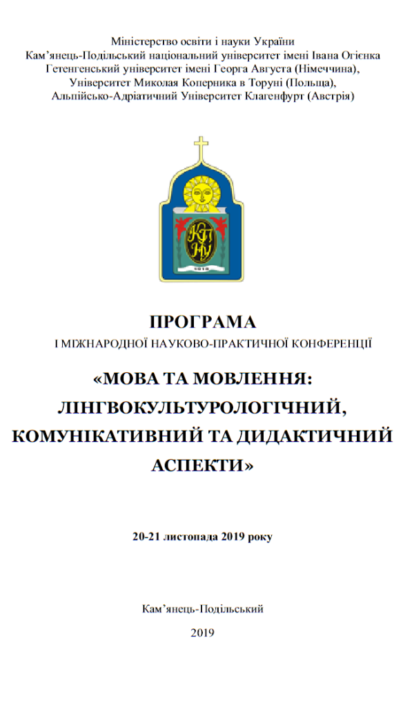 «МОВА ТА МОВЛЕННЯ: ЛІНГВОКУЛЬТУРОЛОГІЧНИЙ, КОМУНІКАТИВНИЙ ТА ДИДАКТИЧНИЙ АСПЕКТИ»