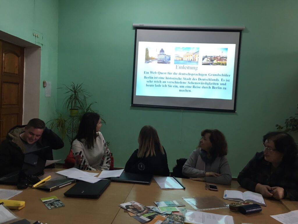 11 грудня 2019 року відбувся захист курсових робіт з «Методики викладання іноземної мови» студентів 4 курсу групи Nim1B16. У представлених наукових розвідках висітлювалися актуальні питання методики викладання німецької мови. Жваву дискусію викликали проблеми використання Інтернет-ресурсів для формування мовленнєвої та граматичної компетентностей, ігрові технології у формуванні лексичної компетентності, особливості використання дидактичних ігор та народних пісень як засобу формування лексичної та лінгвокраїнознавчої компетентності учнів. Члени комісії та наукові керівники висловили свої зауваження, побажання та рекомендації. Студенти гідно представили свої наукові дослідження.
