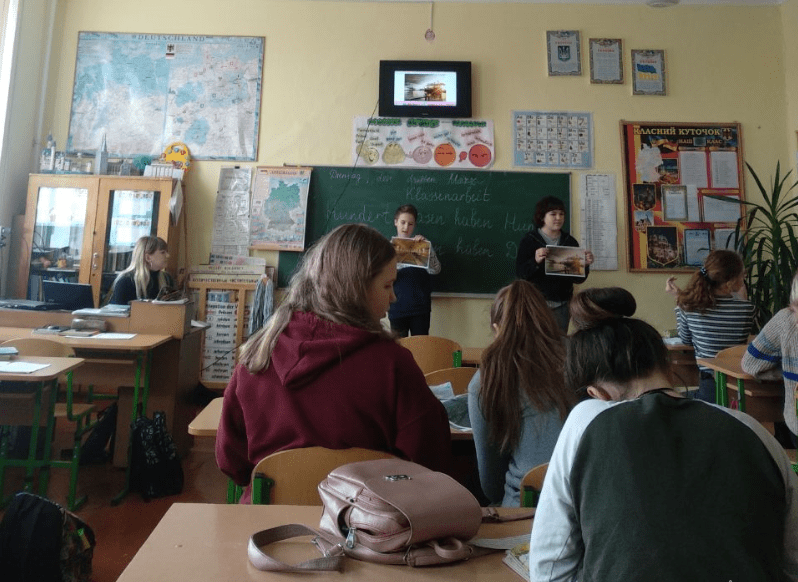«На уроках німецької мови, я часто використовувала мультимедійні засоби навчання. Я демонструвала відео, пісні, аудіювання, ілюстрації, які діти із задоволенням сприймали. Також дітям подобалося, коли, щоб засвоїти краще матеріал, використовувались ігри, презентації, „Lückentext“, „Laufdiktat“ та „Rückendiktat“. Такі види роботи були для дітей новими, але вони із задоволенням та великим інтересом виконували такого виду завдання…»