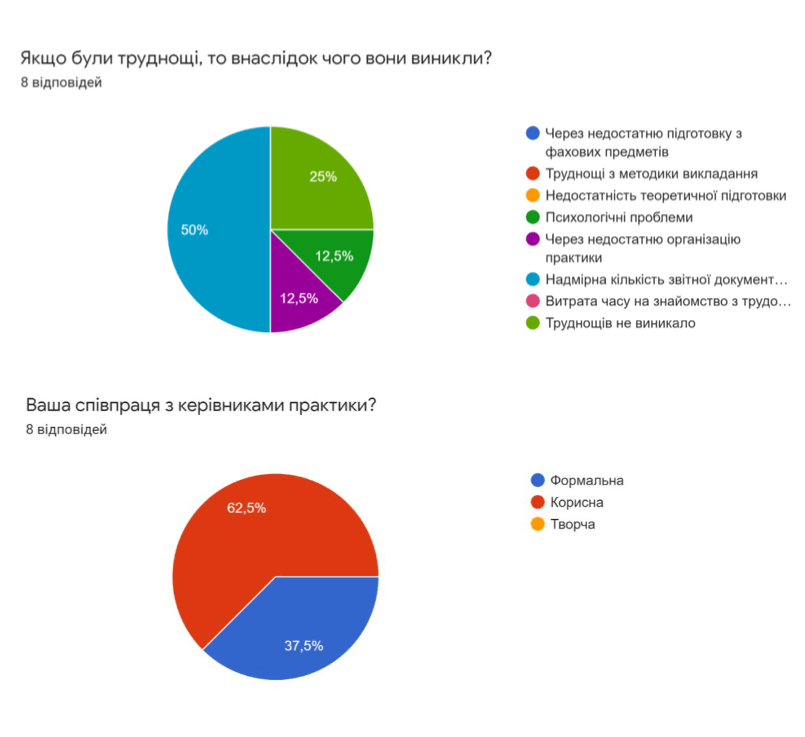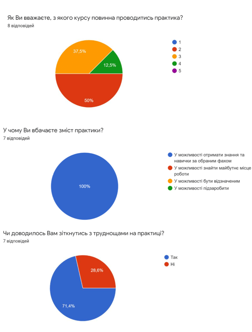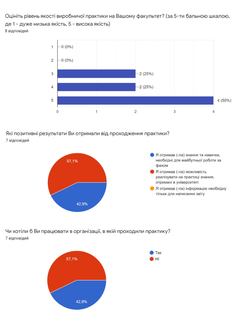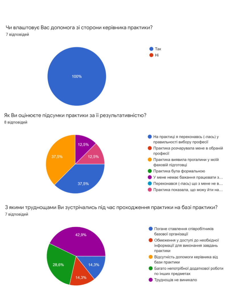 Результати анкетування серед здобувачів вищої освіти першого «бакалаврського» рівня, які пройшли практику