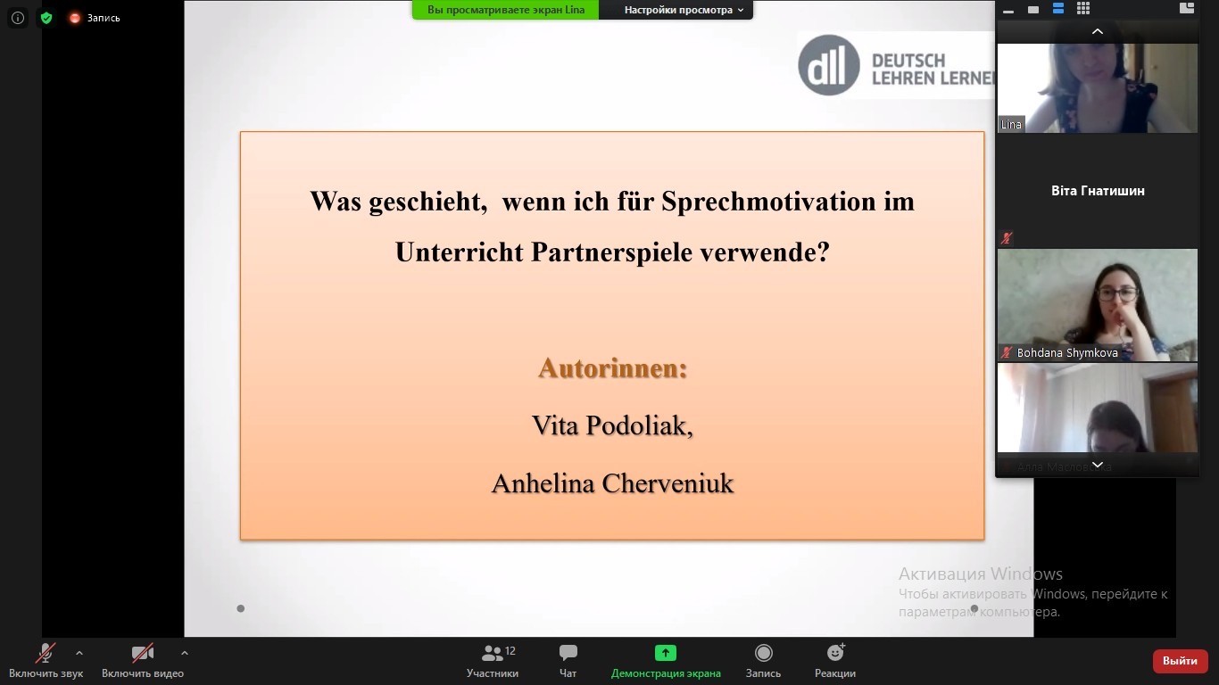 Методична підготовка вчителя німецької мови у рамках програми зорієнтована на вирішення практичних завдань, що покликані формувати фахівця, який володіє новими підходами та технологіями навчання німецької мови. Безперечно, основним викликом у часи пандемії була підготовка та проведення дослідницького проєкту з учнями навчальних закладів міста. Щиро вдячні ліцею «Славутинка» за підтримку та співпрацю.