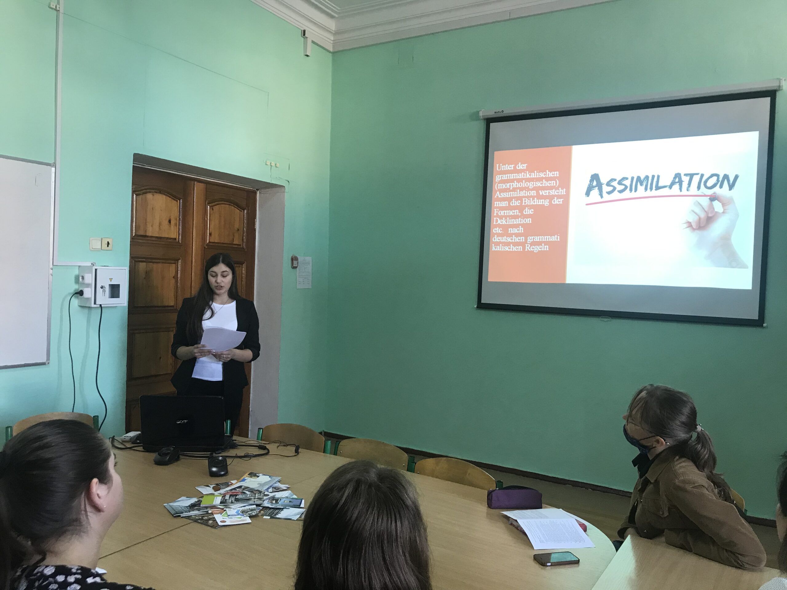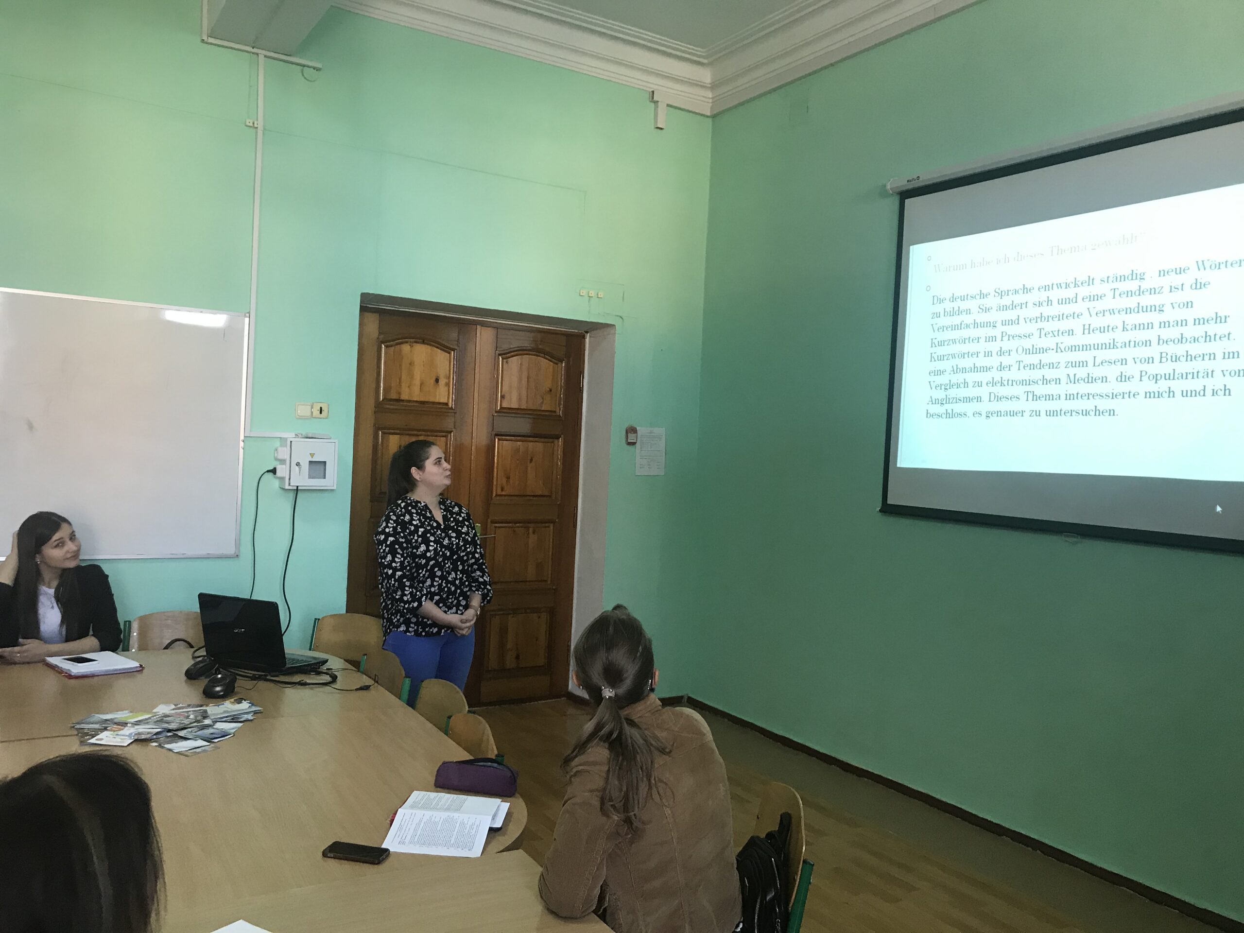 23 вересня 2020 р. у рамках щорічної звітної наукової конференції студентів і магістрантів університету за підсумками науково-дослідної роботи, на кафедрі німецької мови працювало дві підсекції: «Соціолінгвістичний та міжкультурний аспекти дослідження німецької мови», «Сучасні підходи у методиці навчання іноземної мови». Здобувачі вищої освіти представили свої результати досліджень з проблем у галузях фразеології та словотвору німецької мови та когнітивної лінгвістики. Особливий інтерес та жваві дискусії викликали доповіді, що стосувалися новітніх підходів навчання німецької мови.