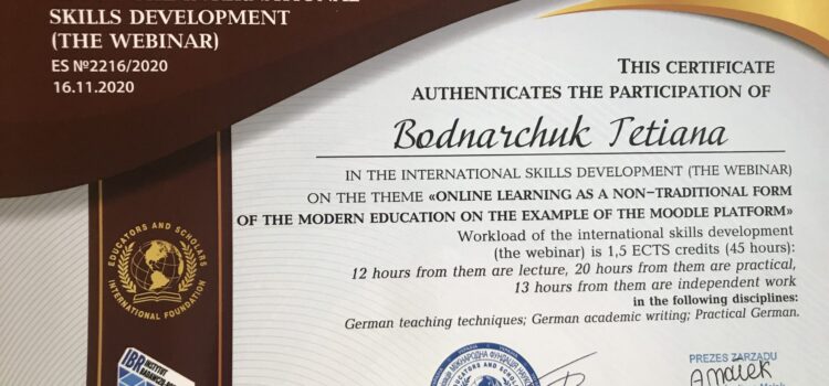 17 грудня 2020 року викладачі кафедри німецької мови провели профорієнтаційну онлайн-зустріч з учнями Опорного закладу Великолевадського ліцею Городоцької міської ради Хмельницької області «Можливості навчання на факультеті іноземної філології КПНУ імені Івана Огієнка». Науково-педагогічні працівники кафедри розповіли про освітньо-професійну програму, за