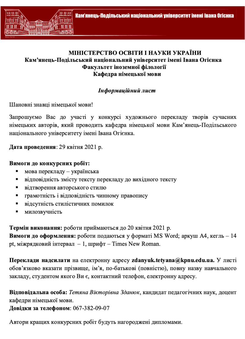 ОПП «Середня освіта (Німецька мова і зарубіжна література)» другого (магістерського) рівня