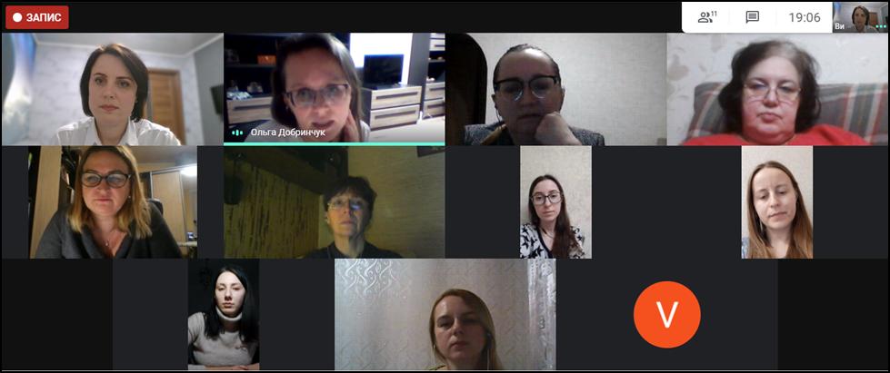 18 лютого 2021 року у рамках обговорення проєкту нової освітньо-професійної програми, а також змін до вже діючих, відбулася чергова зустріч гарнатів освітньо-професійних програм, які реалізує кафедра німецької мови доцента Тетяни Боднарчук та доцента Ольги Добринчук, а також науково-педагогічних працівників кафедри із випускниками, які наразі продовжують свою освітню діяльність. До обговорення долучилися випускники 2012-2020 років, а саме: Фоміна Г. к.ф.н., доцент, доцент кафедри журналістики НУБіП; Медвідь О. викладач німецької мови (мовна школа, м. Київ), Крохмалюк Н. вчитель німецької мови ЗЗСО (с. Шишківці, Дністровський район, Чернівецька обл.), випускники 2020 року – Бучко М., Вовк М., Подоляк В., Шимкова Б.