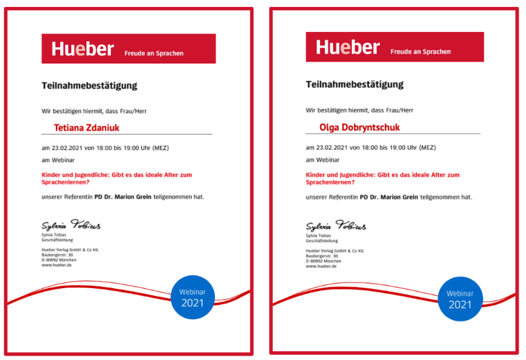На ці та інші питання науково-педагогічні працівники кафедри німецької мови, к.п.н., доцент Т.В. Зданюк та к.ф.н., доцент О.О. Добринчук отримали відповіді під час онлайн-вебінару „Kinder und Jugentliche: Gibt es das ideale Alter zum Sprachenlernen?“ від професора, д-ра Маріон Грін.