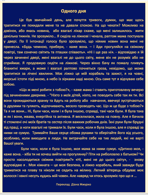 Пропонуємо ознайомитися із перекладами наших учасників: