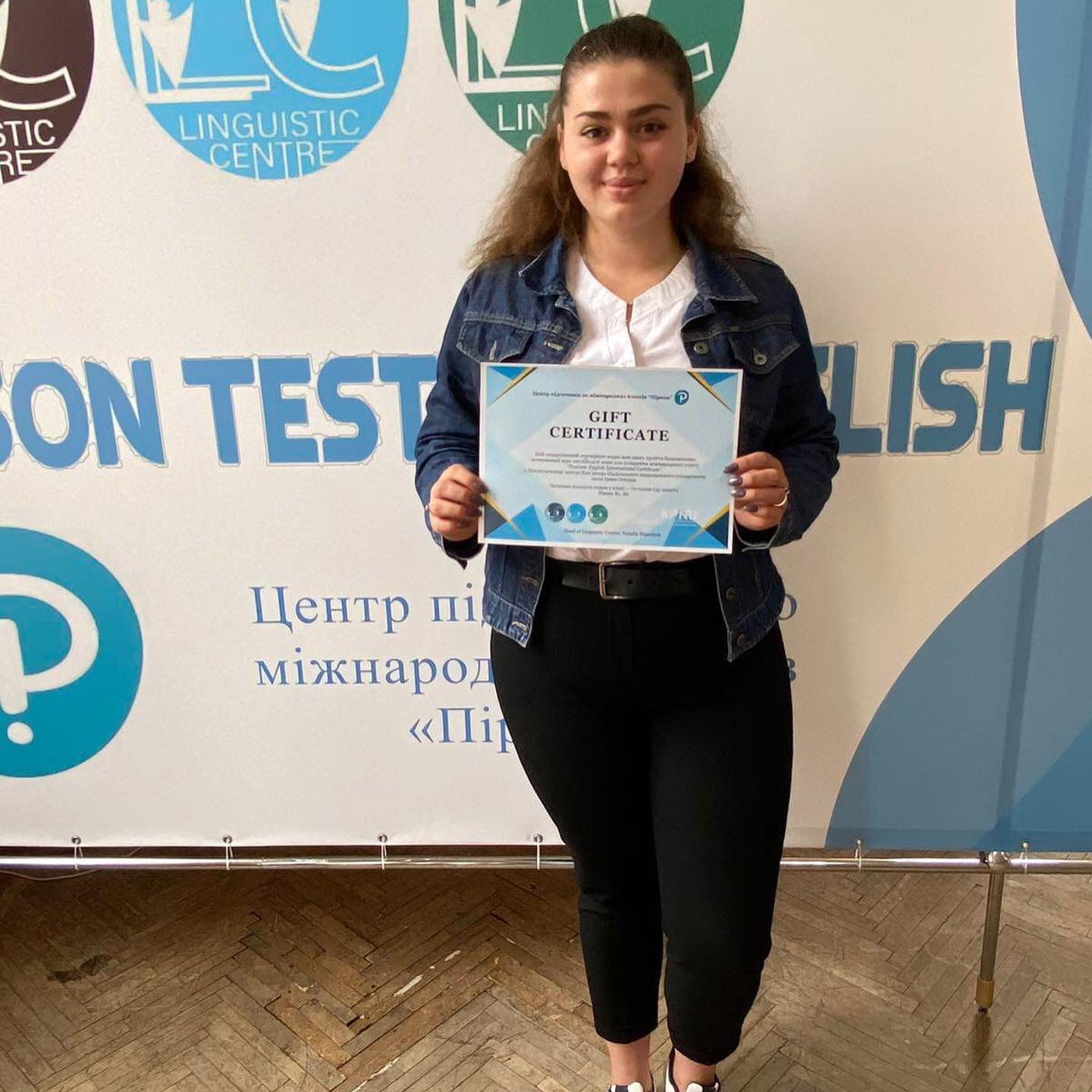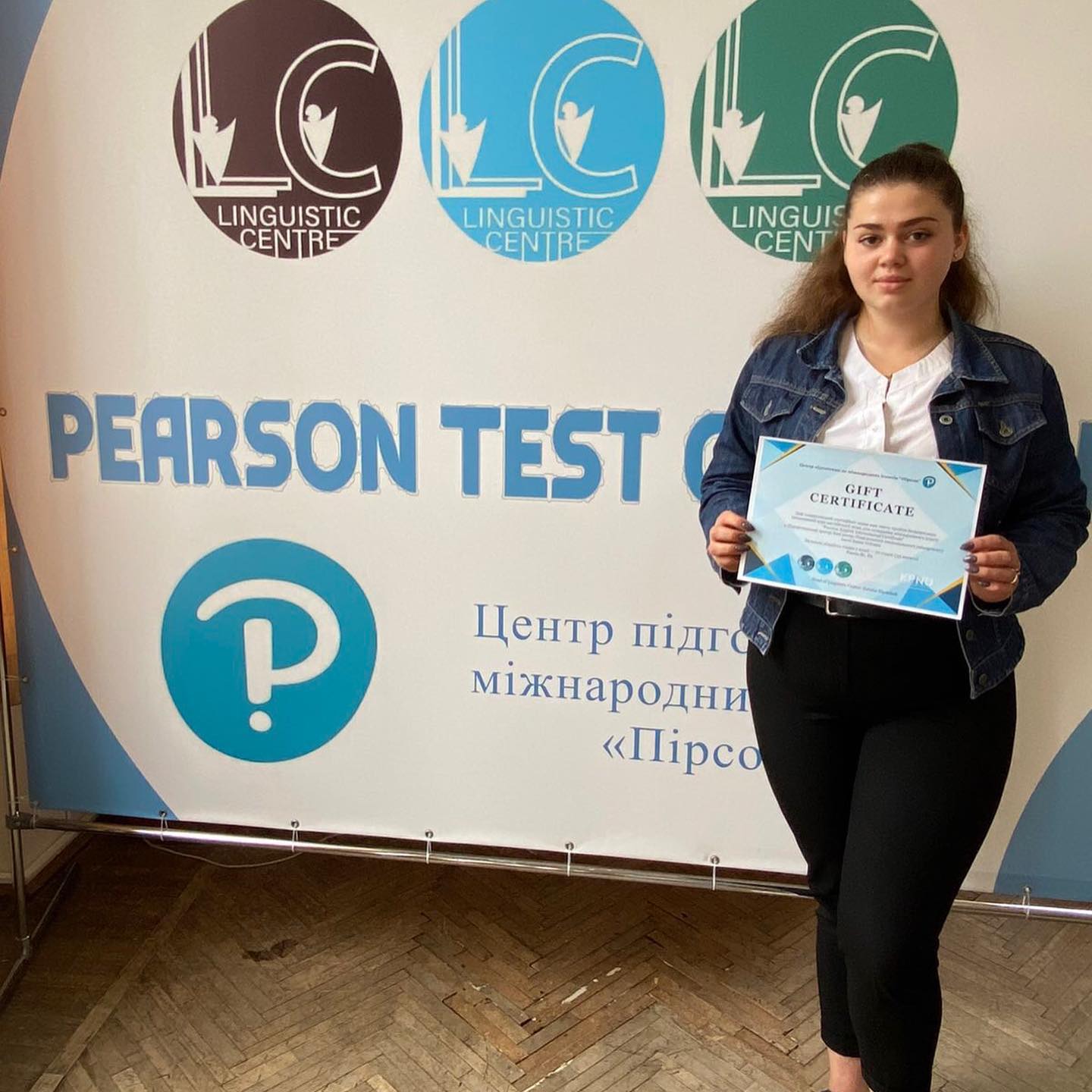 Вітаємо переможницю Венгринську Роксолану, студентку 3 курсу факультету іноземної філології К-ПНУ імені Івана Огієнка з виграшем сертифікату на підготовку до складання Pearson English International Certificate.