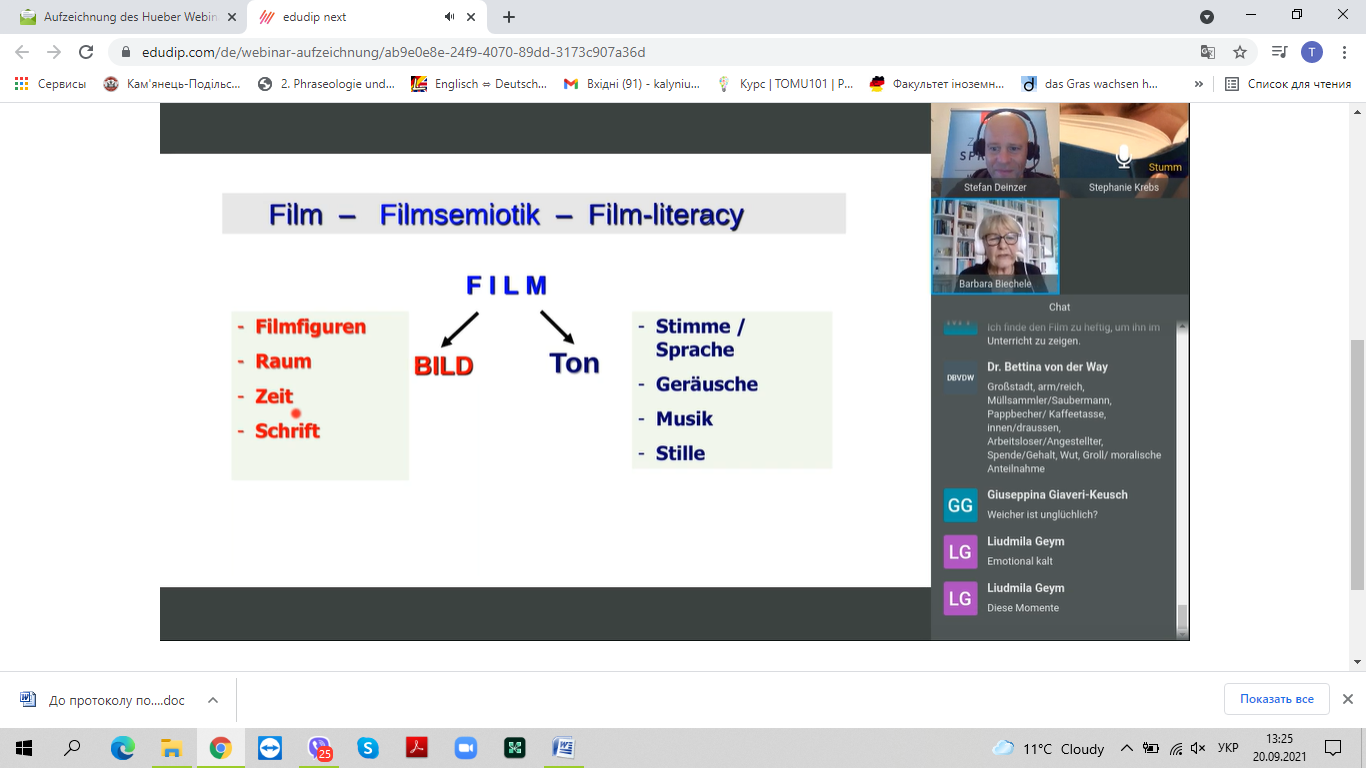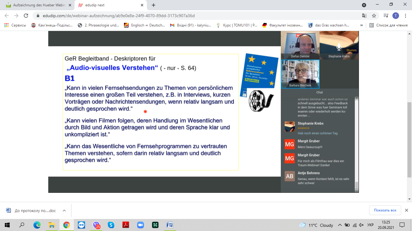 Участь у вебінарі „Reihe 3plus1: Wege zu einer Film-Literacy – entdeckendes Lernen mit fiktionalen Filmen“ (доцент Калинюк Т.В.)