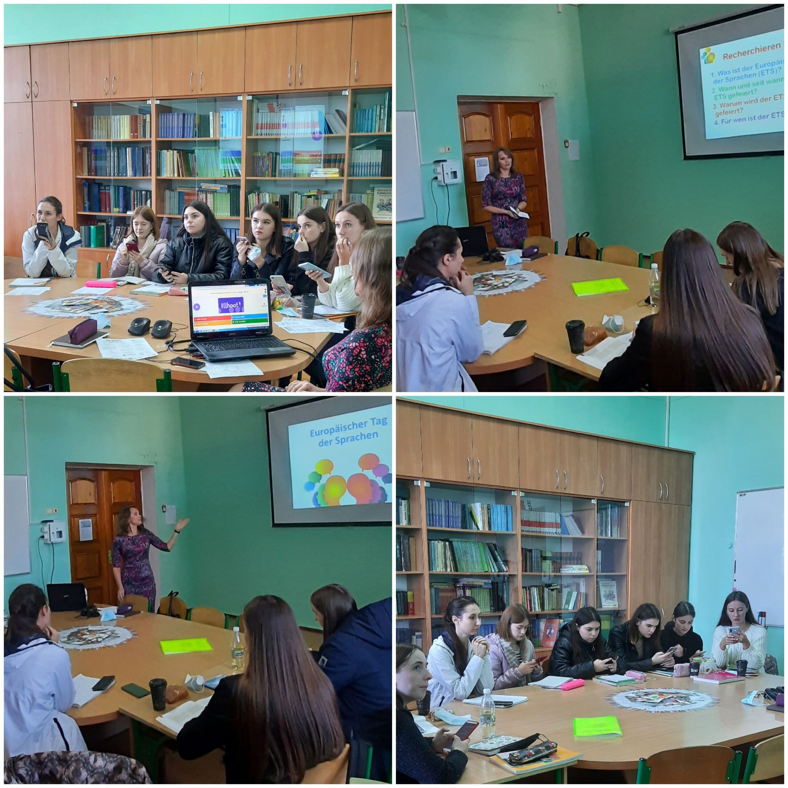 27 вересня 2021 року з нагоди святкування Європейського дня мов на кафедрі німецької мови був проведений культурно-просвітницький захід „Europäischer Tag der Sprachen“, до якого долучилися студенти-германісти другого та третього курсів. Організатори заходу завідувачка кафедри, доцентка Тетяна КАЛИНЮК та доцентка Ольга ДОБРИНЧУК у цікавій і пізнавальній формі ознайомили здобувачів із фактами, які стосуються європейських мов, їх різноманіття та місця серед мов світу. Здобувачі мали нагоду в ігровій формі перевірили свою уважність та отримати заряд позитивної енергії, а, головне, ще раз переконатися у необхідності вивчати іноземні мови, розширювати свій світогляд, активно долучатися до міжкультурного спілкування та діалогу культур.