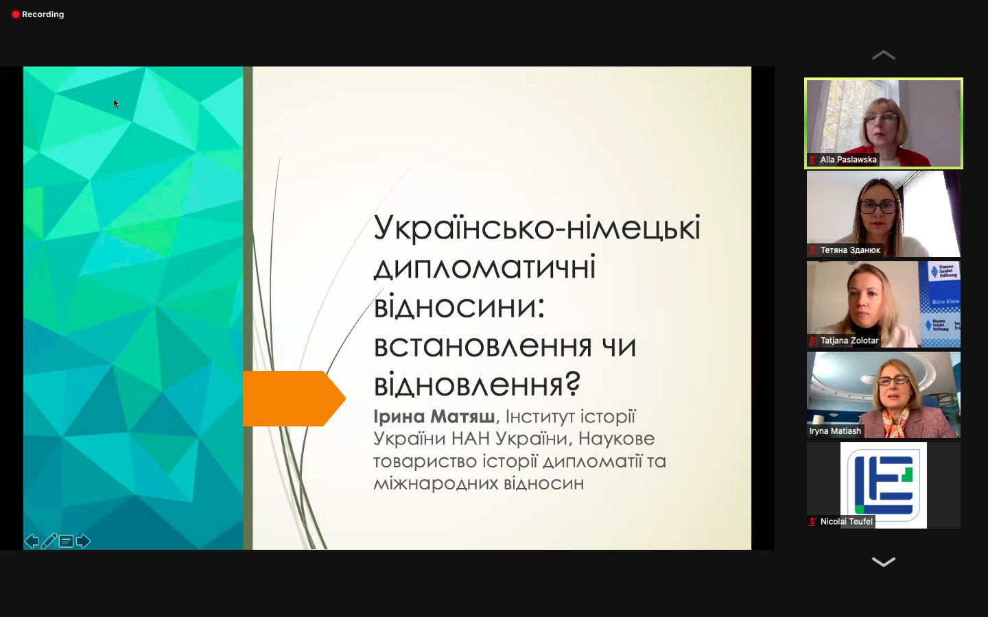 21 жовтня 2021 року науково-педагогічні працівники кафедри німецької мови у рамках співпраці із Асоціацією Українських Германістів взяли участь у роботі Міжнародної конференції «Deutschland – Ukraine. 30 Jahre Zusammenarbeit mit historischen Wurzeln» (онлайн). Метою конференції було представити останні 30 років співпраці між Україною та Німеччиною, а також історію німецько-українських взаємин до здобуття незалежності Української держави. З доповідями виступили відомі українські та німецькі історики, мовознавці та літературознавці, письменники та культурологи.