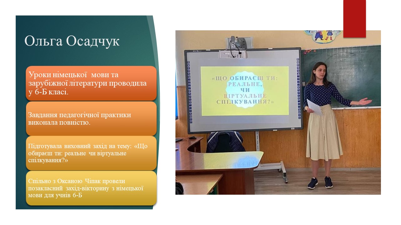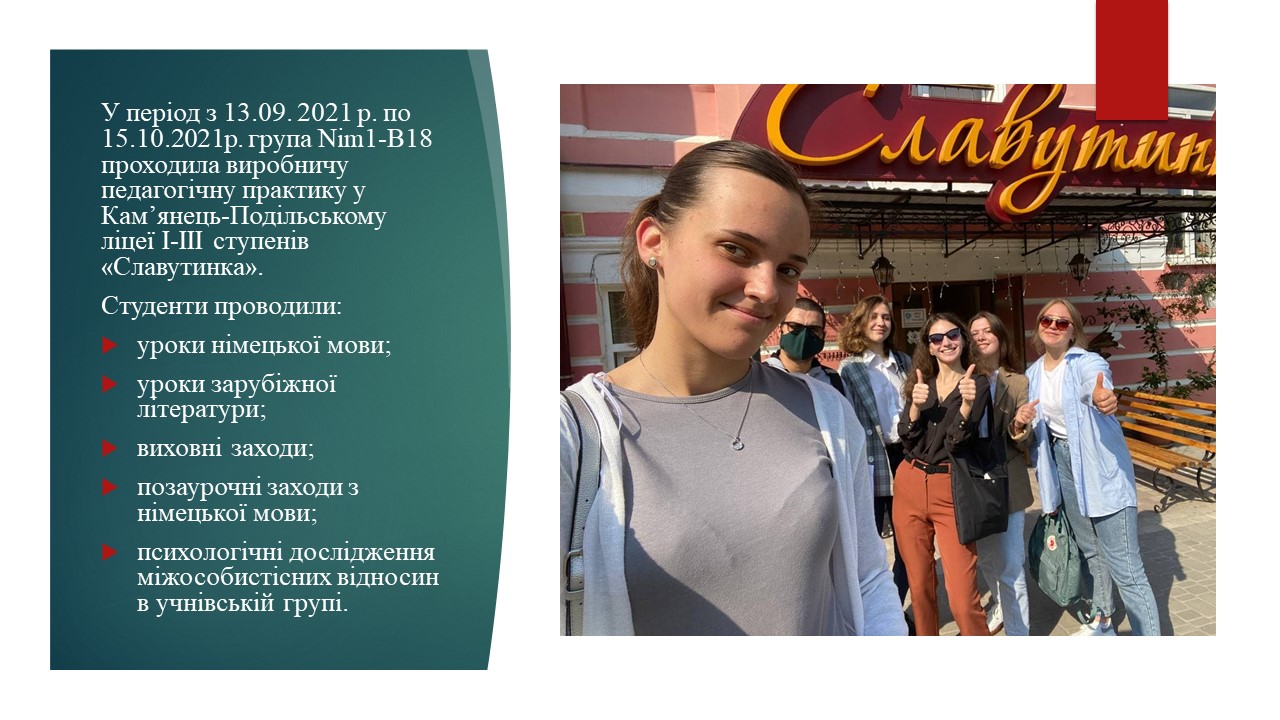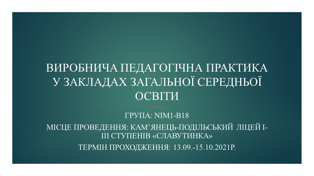 ЗВІТ ПРО ВИРОБНИЧУ ПЕДАГОГІЧНУ ПРАКТИКУ У ЗАКЛАДАХ ЗАГАЛЬНОЇ СЕРЕДНЬОЇ ОСВІТИ (група Nim1-B18, жовтень 2021 р.)