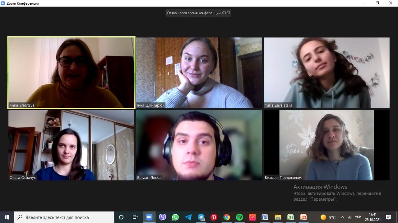 25 жовтня 2021 року відбувся онлайновий захист результатів проходження Виробничої педагогічної практики у закладах загальної середньої освіти здобувачами вищої освіти першого (бакалаврського) рівня спеціальності 014 Середня освіта (Мова і література (німецька) група Nim1-B18. Голова комісії – старший викладач Ганна Братиця та запрошені члени комісії кандидат психологічних наук, доцент Ольга Савицька обговорили результати і підвели підсумки.