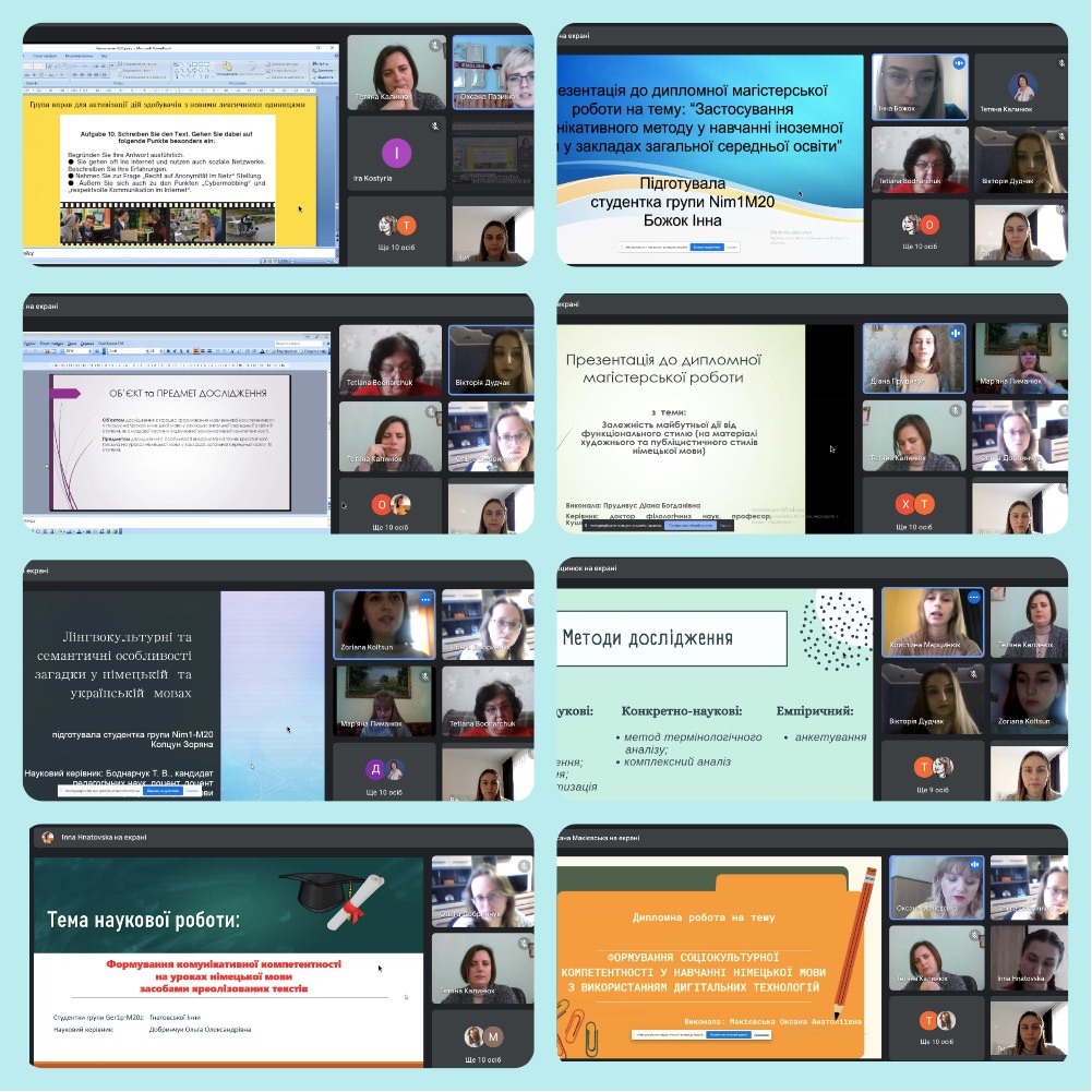 23 листопада 2021 року на кафедрі німецької мови відбувся попередній онлайн-захист дипломних робіт здобувачів другого (магістерського) рівня вищої освіти спеціальності 014 Середня освіта (Мова і література (німецька) денної та заочної форм навчання.