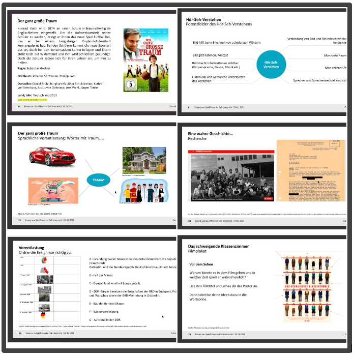 Фільми відкривають двері в інші світи і часи та заохочують до занурення в іншомовну культуру. 30 листопада 2021 року завідувач кафедри німецької мови, доцент Тетяна Калинюк та доцент Тетяна Зданюк, а також здобувачів освіти групи Nim1-B18 взяли участь у вебінарі «Vorhang auf, Film ab! Einsatz von Spielfilmen im DaF-Unterricht», організованого видавництвомCornelsen. Доповідач, Dr. Gamze Karbiо знайомила учасників заходу із основними аспектами дидактизації німецькомовних фільмів з метою поглиблення мовних, мовленнєвих та соціокультурних навичок.