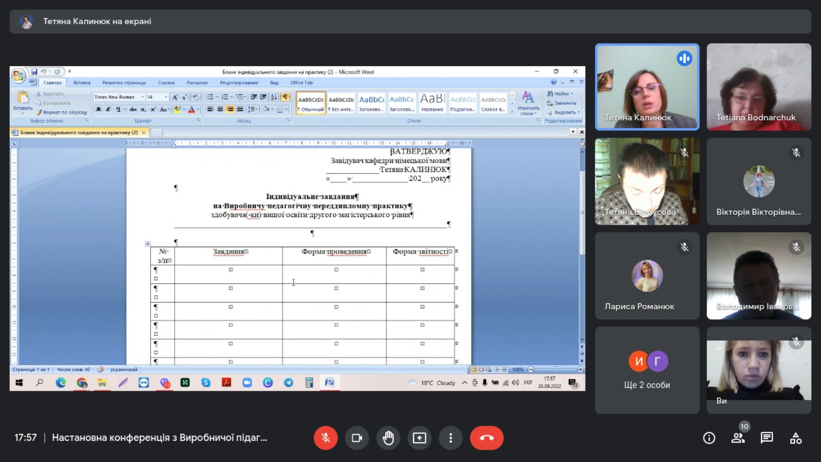 26 вересня 2022 року на факультеті іноземної філології відбулася настановна конференція з Виробничої педагогічної переддипломної практики для магістрантів другого курсу спеціальності 014 Середня освіта (Мова і література (німецька), яка, на освітній програмі «Середня освіта (Німецька мова і зарубіжна література)», відбуватиметься вперше.