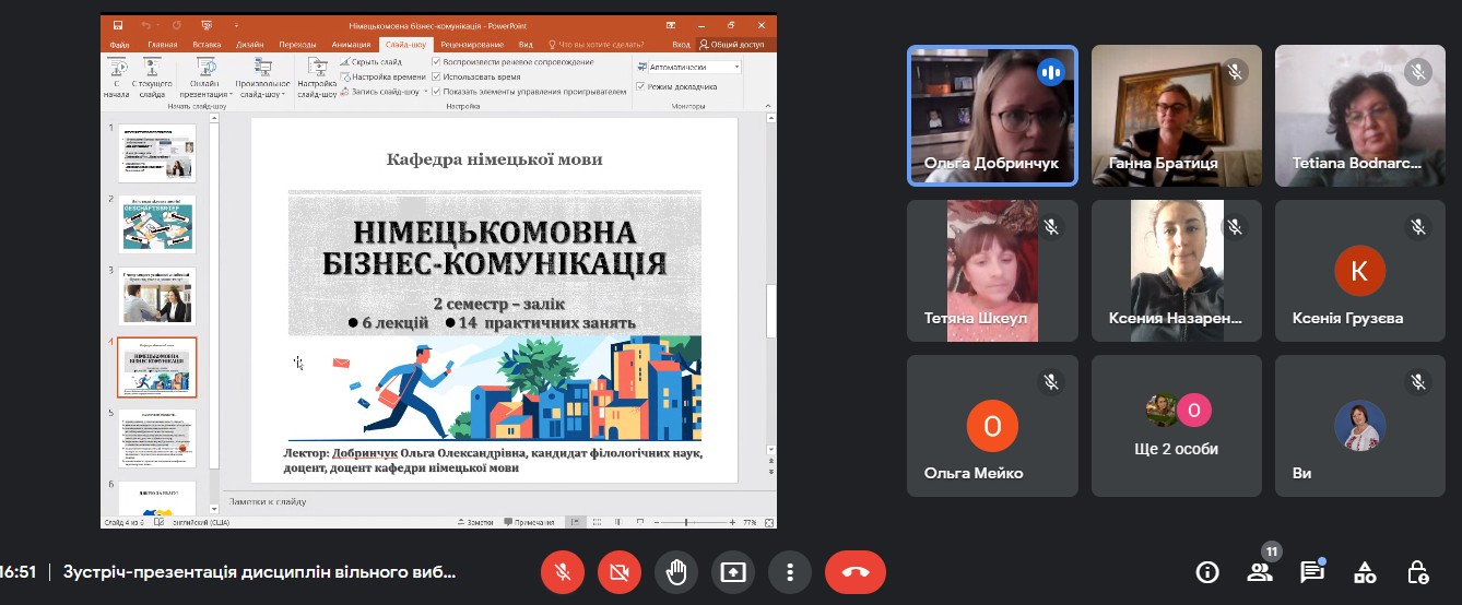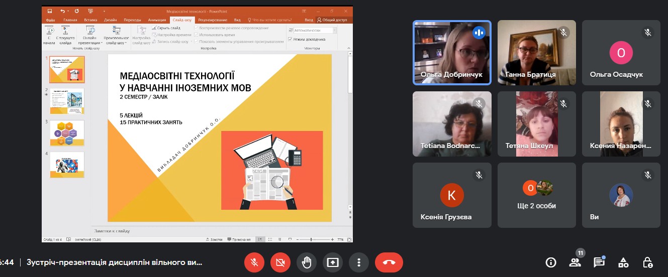 НПП кафедри коротко та змістовно представили у формі презентацій дисципліни вільного вибору, зупинилися на меті та завданнях, особливостях та важливості вивчення даних дисциплін магістрантами у контексті підвищення професійного рівня та побудови власної освітньої траєкторії.
