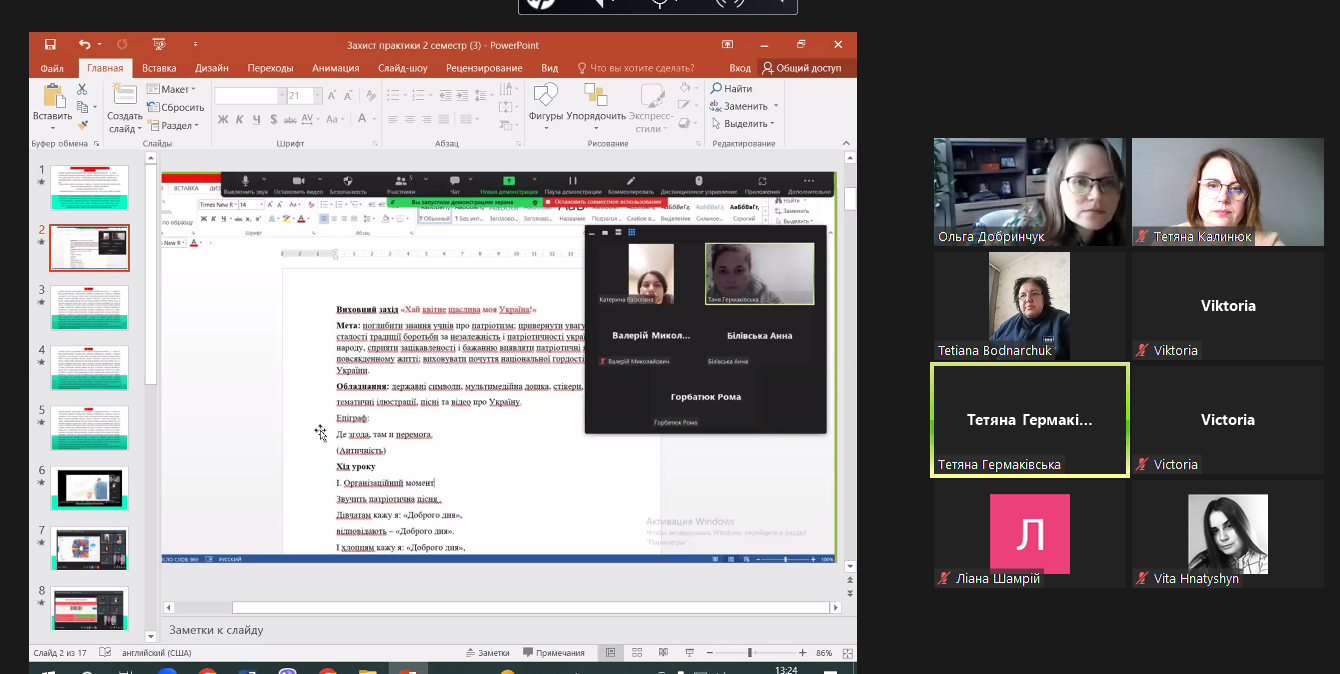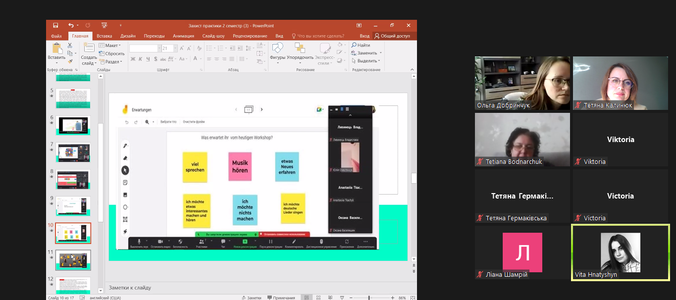У своїй звітній презентації здобувачі продемонстрували фото з проведених ними уроків та поділилися враженнями.