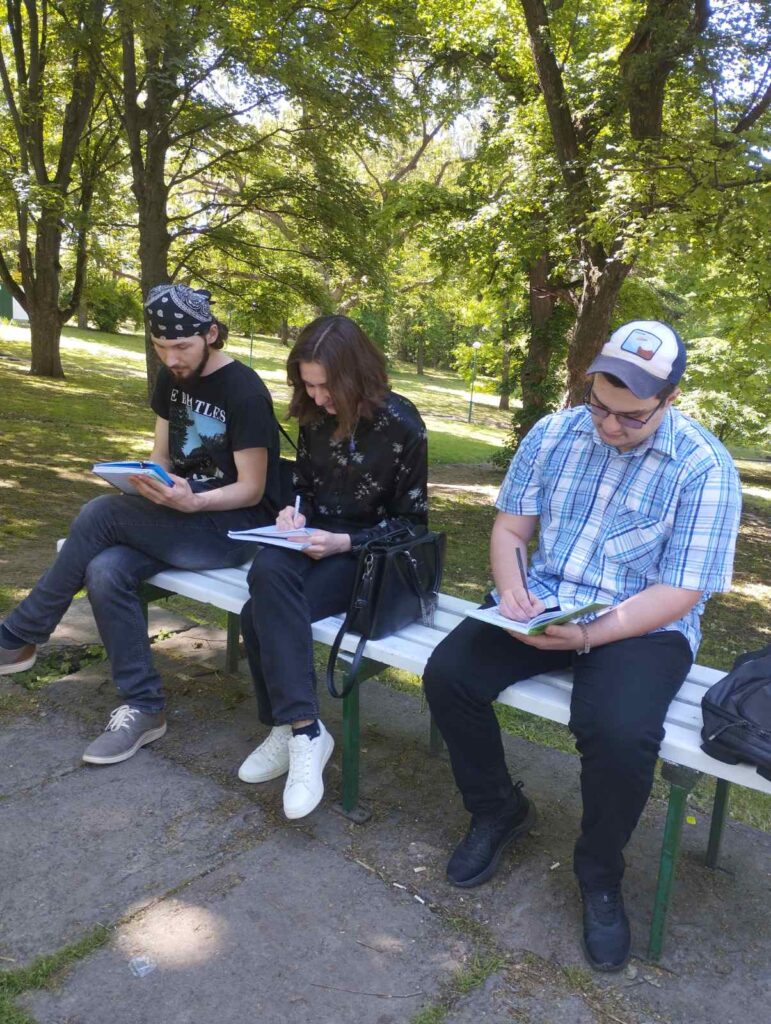 Обравши комфортну локацію, поспостерігавши за людьми довкола, ми одразу взялися до роботи. Закінчивши писати та продемонструвавши результат роботи одне одному, ми дійшли висновку, що накладати власну історію на уже готового героя, який проходить повз, вельми цікаво й захоплююче. Особливо, коли виявляється, що колега обрав ту ж людину для опису, проте продемонстрував її образ з іншої сторони.