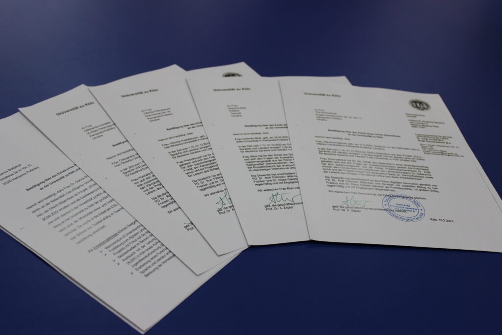 1 червня 2023 року за участі Алли Хоптяр (декан факультету іноземної філології), Тетяни Сторчової (керівниця відділу міжнародних зв’язків), Тетяни Калинюк (завідувача кафедри німецької мови), Ганни Братиці (координатора проєкту «Ukraine digital») відбулося урочисте вручення сертифікатів стипендіатам DAAD, які засвідчують завершення академічної мобільності (онлайн) за формою – навчання. П’ятеро здобувачок вищої освіти факультету іноземної філології – Соломія Білик, Олександра Горобець, Віта Коновальчук, Вікторія Предиткевич, Лариса Прядко – упродовж семестру навчалися у Кельнському Університеті (Universität zu Köln, Німеччина). Вони мали можливість відвідувати лекції та семінари професорів університету: «Märchen und Novellen mit speziellen Bezug zu Ivan Franko» (PD, Dr. Rolf Füllmann), «Deutsch als Fremdsprache» (Dr. Diana Gebele).