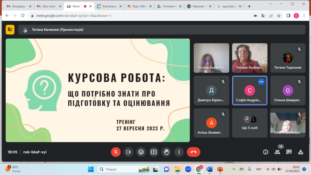 27 вересня 2023 року на кафедрі німецької мови відбувся тренінг «Курсова робота: що потрібно знати про підготовку та оцінювання» для здобувачів вищої освіти 3-4 курсів, які цьогоріч виконуватимуть наукові дослідження з методики навчання німецької мови.