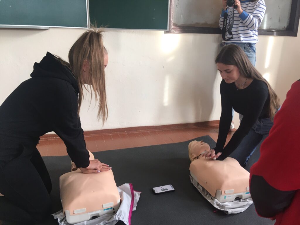 Наостанок, використовуючи манекени, які обладнані спеціальними електронними пристроями, усі бажаючі мали можливість відпрацювати практичні навички проведення серцево-легеневої реанімації.