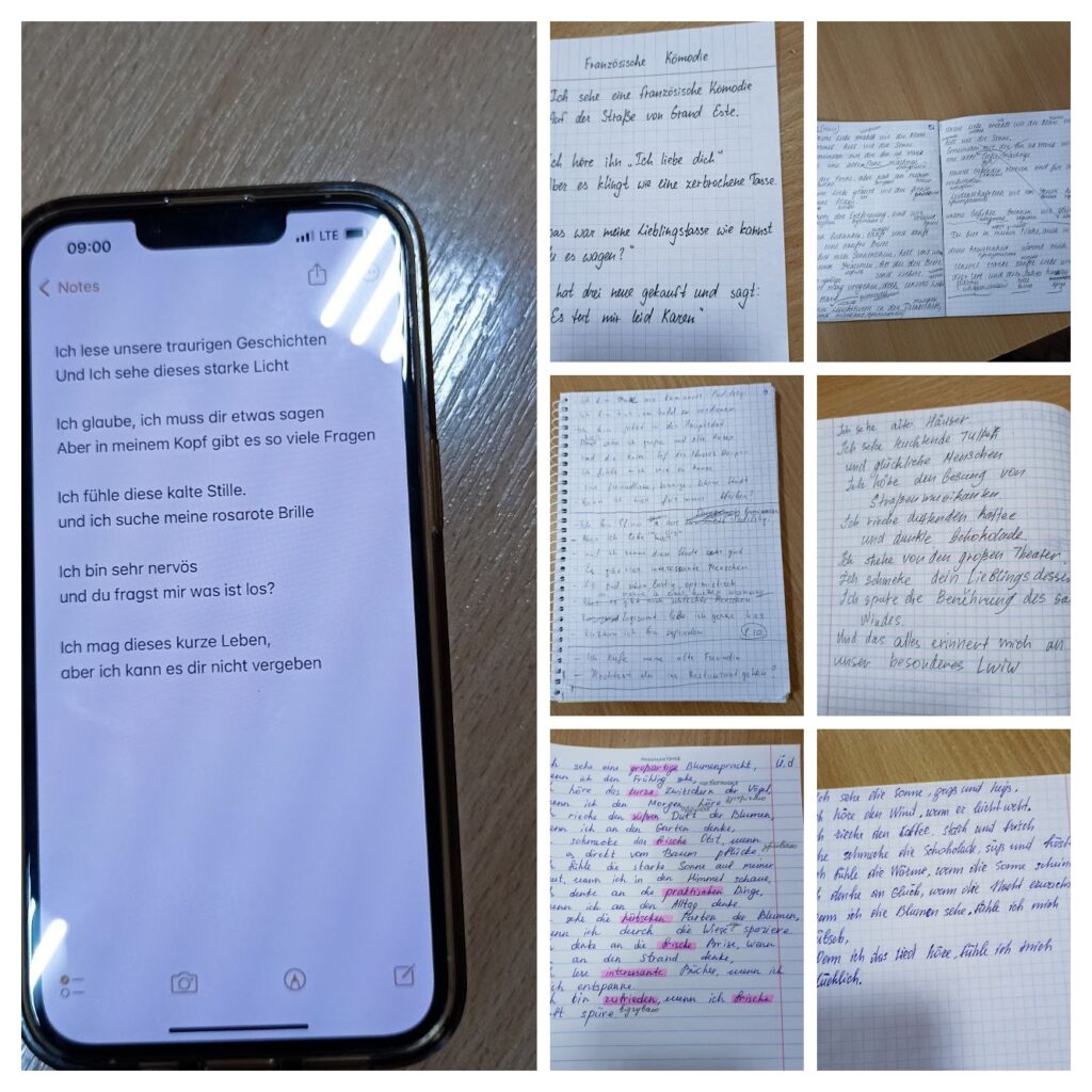 У межах навчальної дисципліни «Практика усного та писемного мовлення німецької мови» (викладач – Олена ШМИРКО), опановуючи техніки кращого запам’ятовування лексики та граматичних структур (тема «Texte auswendig lernen: Tipps und Tricks»), студенти групи Ang1-B21 представили власні творчі доробки. Серед фаворитів – вірші-асоціації та реп. Разом спробували декламувати власні вірші та читати реп.