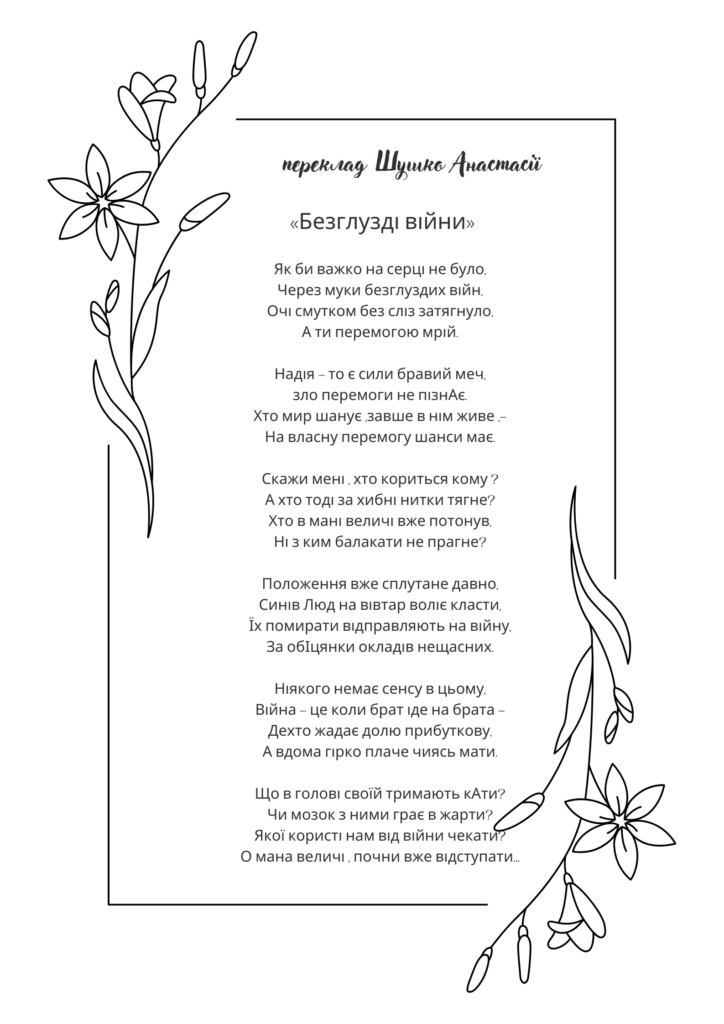 Цьогоріч учасниками «Конкурсу художнього перекладу – 2024!» стали 47 здобувачів вищої освіти з 20 вищих навчальних закладів України! Для учасників конкурсу було запропоновано художні твори сучасних німецьких авторів, а саме: вірш «Sinnloskriege» von Gabriela Bredehorn та прозовий текст-казка «Geschenk» von Raphael Herzog. Журі конкурсу (доц. Добринчук О.О., доц. Калинюк Т.В., доц. Боднарчук Т.В.) отримало більше 70 перекладів, які відзначилися неординарним підходом до відтворення авторського стилю, витонченим та влучним використанням художніх засобів, цікавими перекладацькими трансформація. В оцінці робіт враховувалися також такі критерії як милозвучність та оригінальність перекладу.