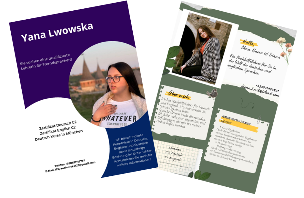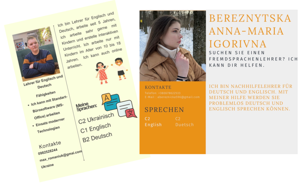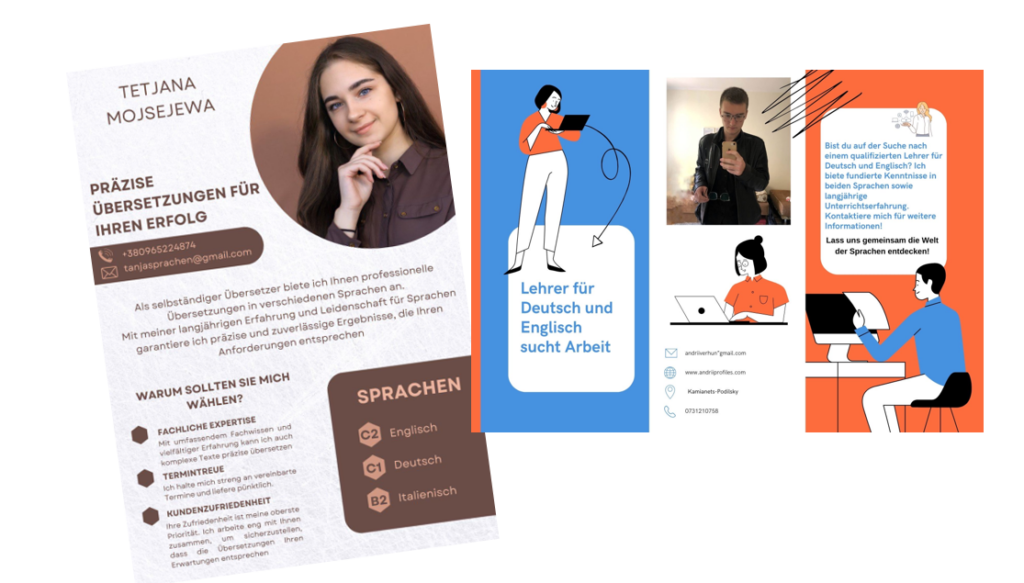 Впродовж ІІ семестру 2023-2024 навчального року здобувачі освіти факультету іноземної філології (групи Nim1-B20, Ang1-B21 та Fil1-B21) вивчали такий курс як “Ділова німецька мова” (викладач – доцент Ольга Добринчук). Метою навчальної дисципліни було навчити здобувачів ВО розуміти усне та письмове німецьке мовлення та реагувати на нього у процесі ділового спілкування; аналізувати оголошення про вакансії;  проводити телефонні розмови; писати автобіографію (у різних формах), резюме, лист-подяку, лист-прохання, лист-уточнення тощо. На практичних заняттях студенти створювали Arbeitsflyer, Lebenslauf та Anschreiben, розігрували співбесіди та тренували телефонні розмови, вчилися представляти себе або ж якісь продукт чи послугу.