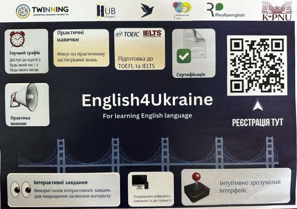 Науково-педагогічні працівники кафедри німецької мови Тетяна КАЛИНЮК та Ганна БРАТИЦЯ стали учасниками проєкту з вивчення англійської мови «English4Ukraine» https://www.facebook.com/e4ukraine, який реалізується у співпраці Університету Огієнка з Маріупольським державним університетом.