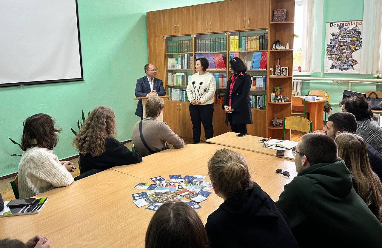 29 жовтня 2024 року на факультеті іноземної філології відбулася гостьова лекція «Цілі сталого розвитку: глобальні та національні виміри», яку прочитав Олександр Борисович КОМАРНІЦЬКИЙ, доктор історичних наук, професор, професор кафедри історії України К-ПНУ імені Івана Огієнка, академік Національної академії наук вищої освіти України. Присутні здобувачі І-ІV курсів бакалаврського та І курсу магістерського рівнів вищої освіти спеціальності 014 Середня освіта (Мова та зарубіжна література (німецька) разом із деканом факультету доцентом Аллою ХОПТЯР та науково-педагогічними працівниками кафедри німецької мови обговорили ключові завдання, які стоять перед світом та Україною зокрема, аби забезпечити сталий розвиток для нинішніх і майбутніх поколінь. Під час бесіди дізналися про глобальні ініціативи щодо боротьби зі зміною клімату, зменшення бідності, забезпечення якісної освіти та гендерної рівності тощо. Присутні обговорили, як кожен може зробити свій внесок у досягнення цих цілей у повсякденному житті. Здобувачі вищої освіти поділитися власними ідеями та думками щодо цінностей у сучасному суспільстві.