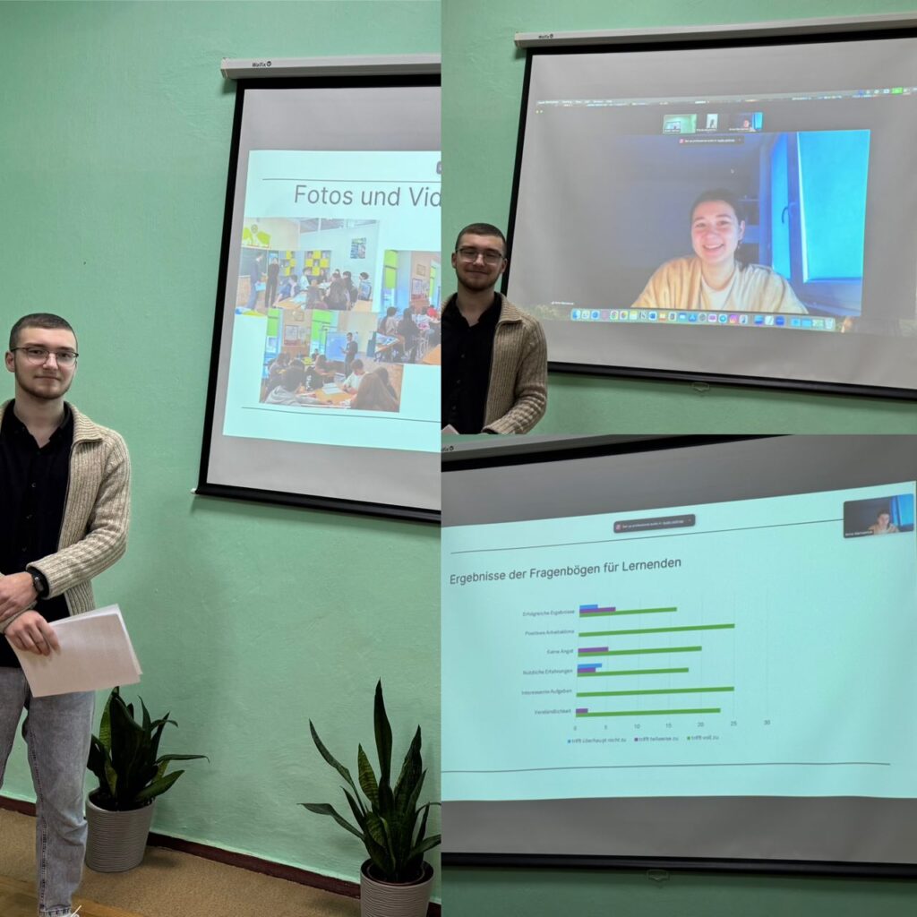 Упродовж двох семестрів студенти виконували завдання на онлайн-платформі Goethe Institut Ukraine, а у підсумку у тридемах і тандемах розробили проєкти, провели їх під час навчальної ознайомлювальної педагогічної практики з німецької мови на базі Кам’янець-Подільського ліцею «Славутинка» та проаналізували їх результати.