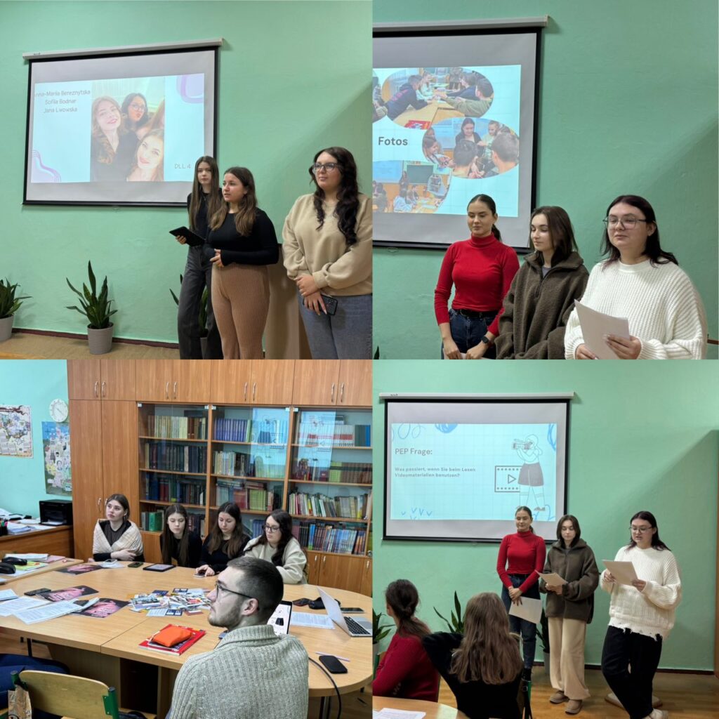 26 грудня 2024 р. здобувачі вищої освіти третього курсу (група Nim1-B22) захистили дослідницькі роботи, підготовлені у межах міжнародного проєкту „DLL: Deutsch lehren lernen”, який реалізується кафедрою німецької мови у межах підписаної угоди з Goethe Institut Ukraine.