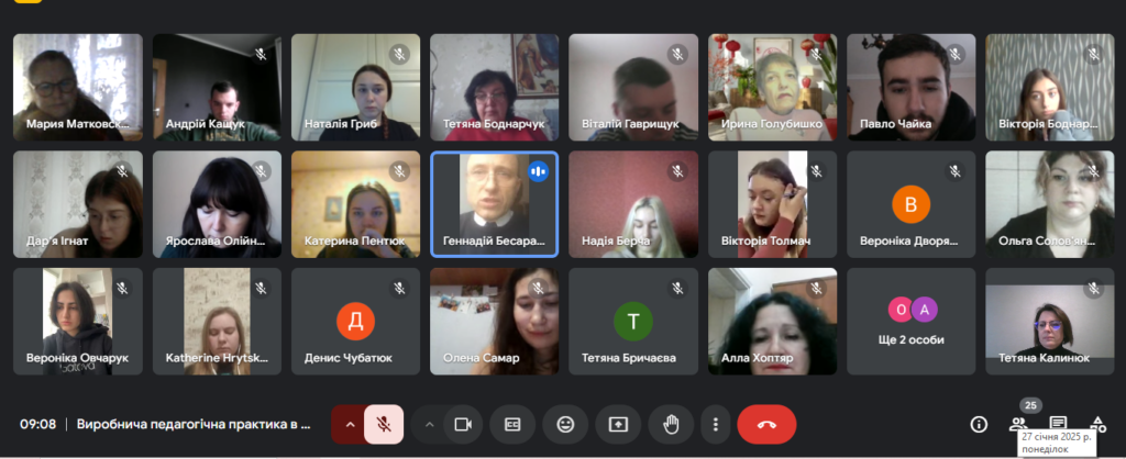 27 січня 2025 року на факультеті іноземної філології в онлайновому форматі відбулася настановна конференція для здобувачів другого (магістерського) рівня вищої освіти. З 27 січня по 23 березня 2025 року вони виконуватимуть завдання програми Виробничої педагогічної практики у закладах загальної середньої освіти. Керівники практики від фахових кафедр, а також кафедри педагогіки і менеджменту освіти та кафедри психології освіти детально розповіли про зміст завдань, послідовність їх виконання, критерії оцінювання та процедуру захисту звітних матеріалів. Методисти наголосили на важливості використання сучасних технологій викладання фахових дисциплін, вивченні досвіду вчителів-предметників тощо. Усі здобувачі вищої освіти пройшли інструктаж з техніки безпеки.