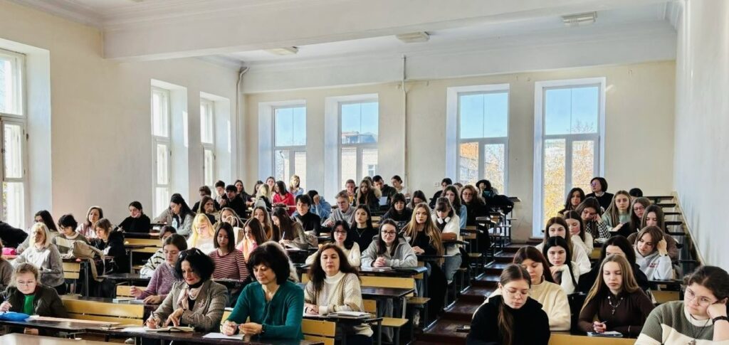 27 жовтня здобувачі вищої освіти факультету іноземної філології Кам’янець-Подільського національного університету імені Івана Огієнка долучилися до традиційного Всеукраїнського радіодиктанту національної єдності, який об’єднує українців у всьому світі. Захід покликаний не лише перевірити рівень грамотності, а й утвердити почуття єдності, гордості за українську мову та культуру. Майбутні вчителі-філологи писали диктант разом із викладачами кафедр факультету, демонструючи шану до рідного слова та професійну мотивацію вдосконалювати мовні компетентності.