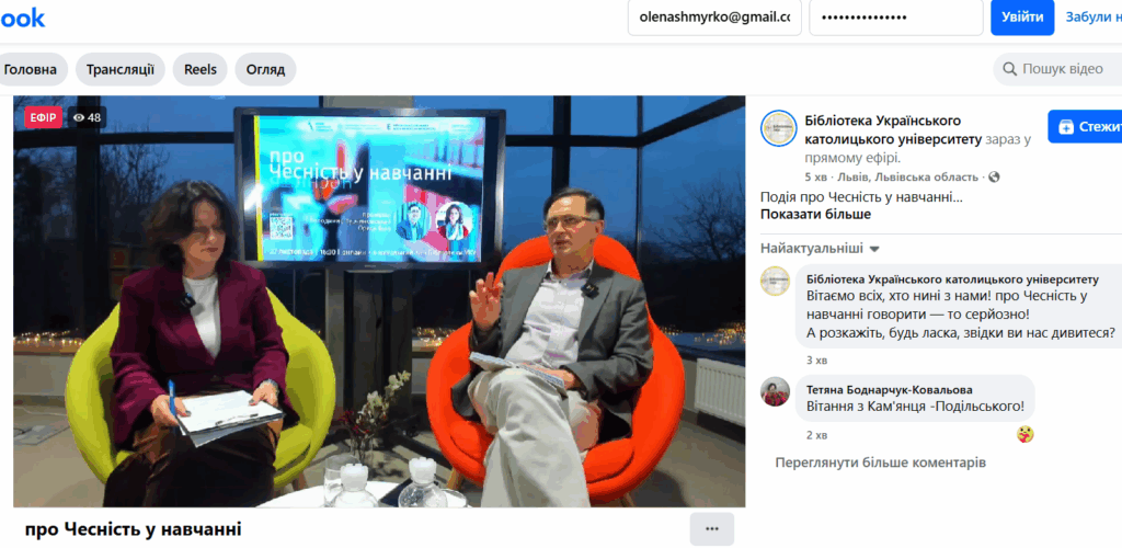27.11.2025 к.пед.наук, доц. Боднарчук Т. В. та к.пед.наук Шмирко О. С. взяли участь у семінарі в рамках промоції академічної доброчесності від Бібліотеки УКУ «про Чесність у навчанні». Промовці: Володимир Турчиновський — декан Факультету суспільних наук УКУ, кандидат філософських наук, доктор філософії, Ph.D; Орися Біла — завідувачка кафедри філософії Філософсько-богословського факультету УКУ, кандидатка філософських наук, пояснювали складне просто й неформально і говорили про серйозне дуже по-людськи й мотивуюче, намагалися донести до цільової аудиторії, що чесність насправді дає свободу, репутацію та чисте сумління, а на довгій дистанції виграє не той, хто шукає лазівки, а той, хто будує свої навички.
