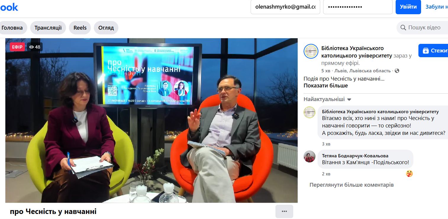 27.11.2025 к.пед.наук, доц. Боднарчук Т. В. та к.пед.наук Шмирко О. С. взяли участь у семінарі в рамках промоції академічної доброчесності від Бібліотеки УКУ «про Чесність у навчанні». Промовці: Володимир Турчиновський — декан Факультету суспільних наук УКУ, кандидат філософських наук, доктор філософії, Ph.D; Орися Біла — завідувачка кафедри філософії Філософсько-богословського факультету УКУ, кандидатка філософських наук, пояснювали складне просто й неформально і говорили про серйозне дуже по-людськи й мотивуюче, намагалися донести до цільової аудиторії, що чесність насправді дає свободу, репутацію та чисте сумління, а на довгій дистанції виграє не той, хто шукає лазівки, а той, хто будує свої навички.