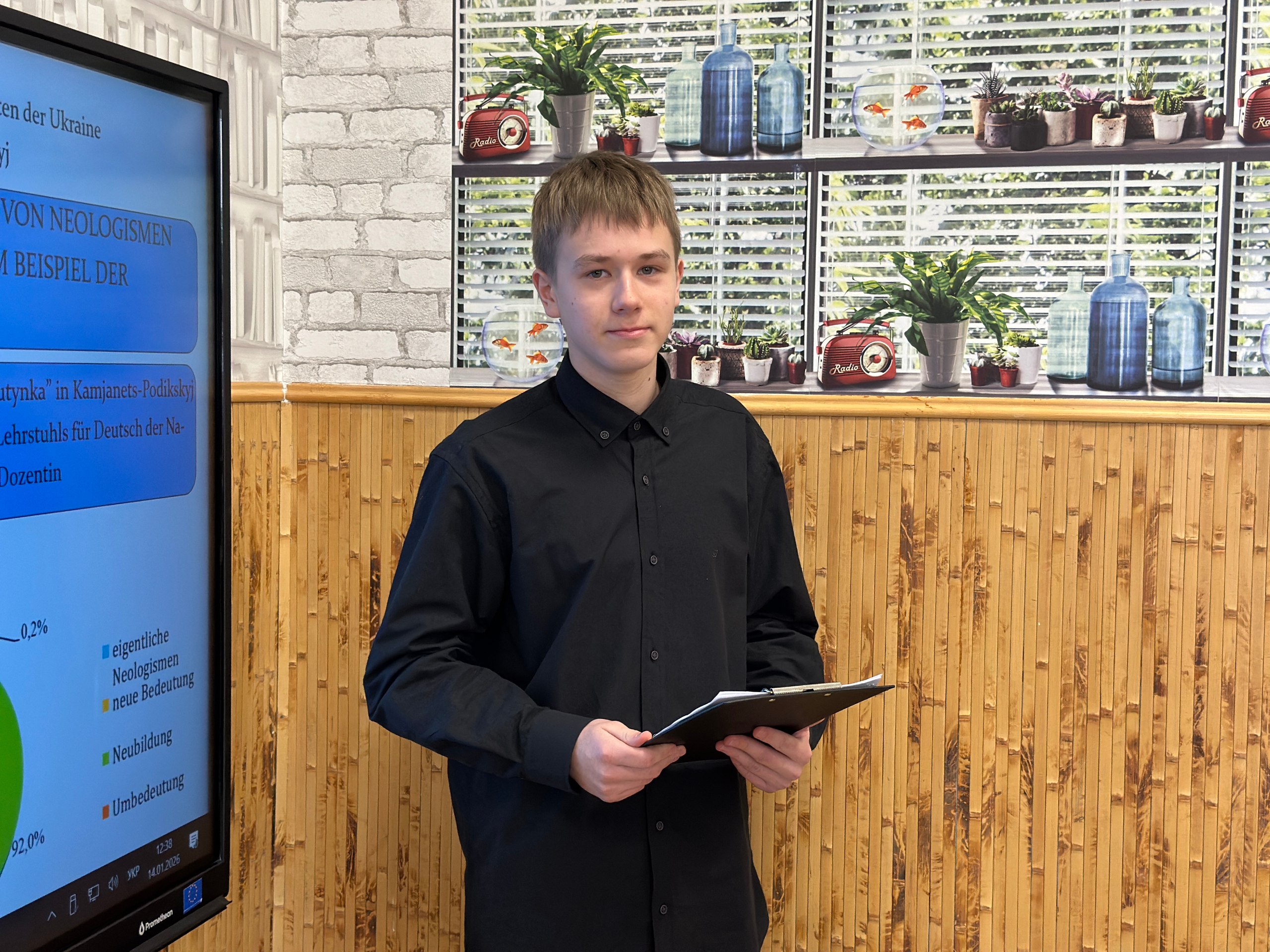 На розгляд жюрі секції «Німецька мова та німецькомовна література» був представлений дослідницький проєкт Вероніки Лук’янчук учениці 10 класу Кам’янець-Подільського ліцею № 15 (науковий керівник – кандидат філологічних наук, доцент Ольга ДОБРИНЧУК), яка у підсумку посіла ІІ місце.