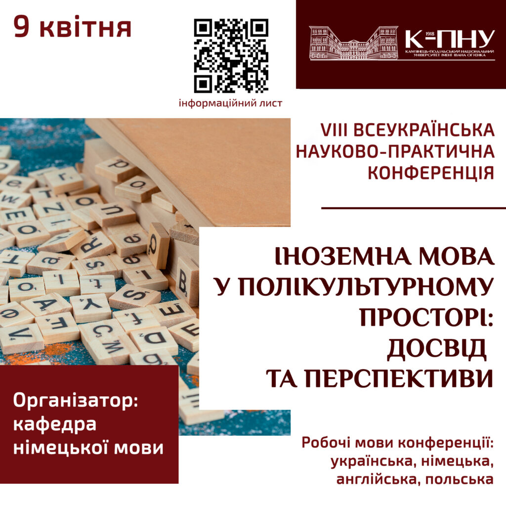 Кафедра німецької мови Кам’янець-Подільського національного університету імені Івана Огієнка запрошує науковців, науково-педагогічних працівників, аспірантів та здобувачів вищої освіти взяти участь (дистанційна форма).