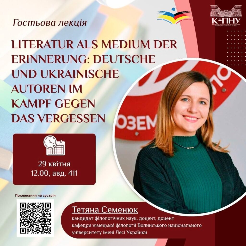Кафедра німецької мови 24.04.2026 Гостьові лекції, Студенту