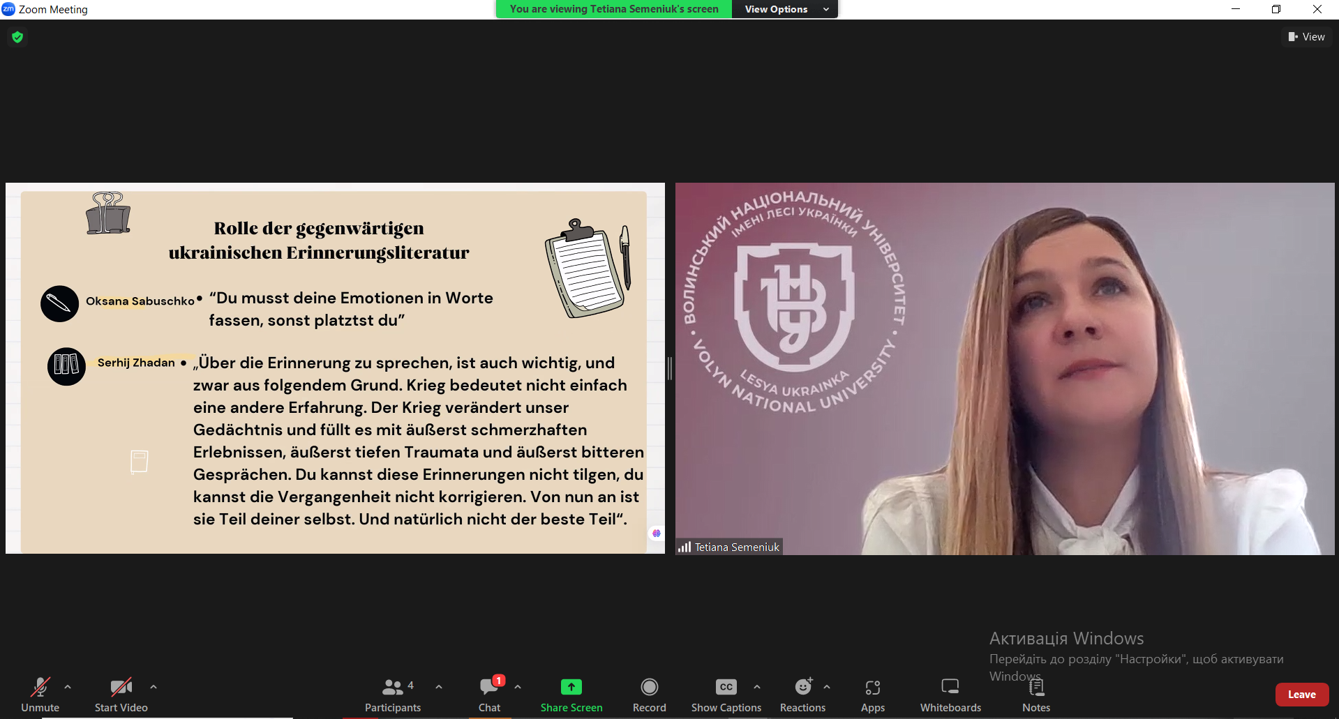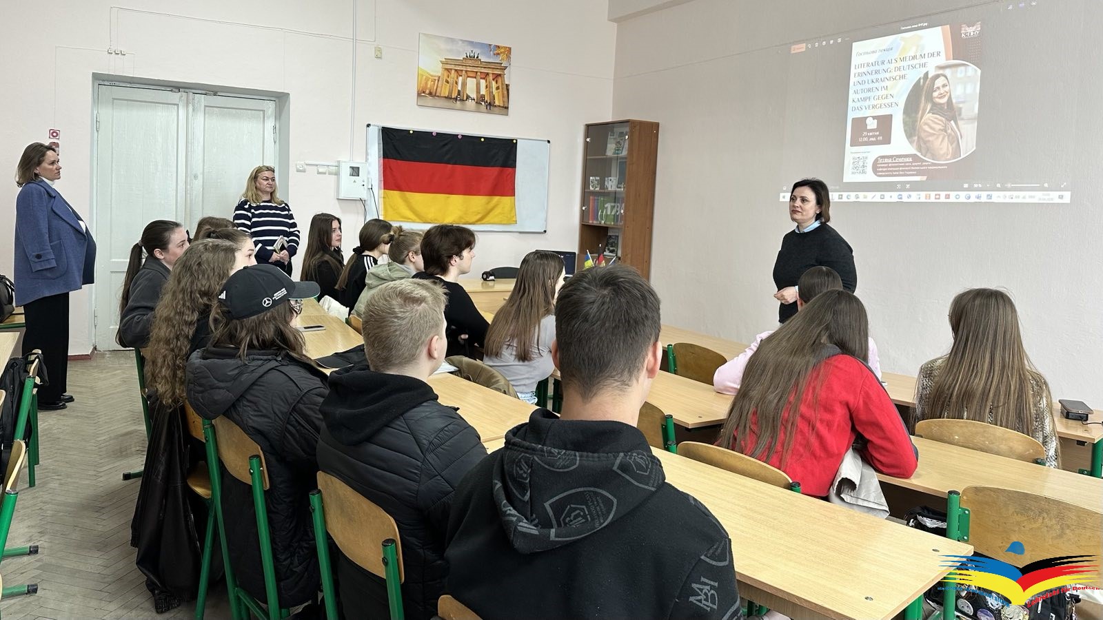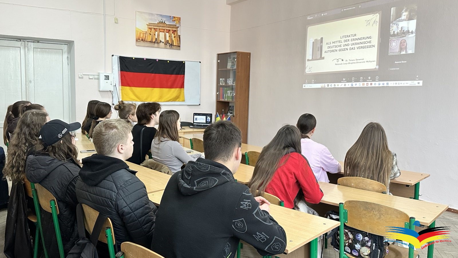 У межах освітньо-наукової співпраці кафедри німецької мови Кам’янець-Подільського національного університету ім. Івана Огієнка та кафедри німецької філології Волинського національного університету ім. Лесі Українки відбулася гостьова лекція на тему «Literatur als Medium der Erinnerung: Deutsche und ukrainische Autoren im Kampf gegen das Vergessen». Спікеркою виступила кандидат філологічних наук, доцент, доцент кафедри німецької філології Тетяна СЕМЕНЮК.