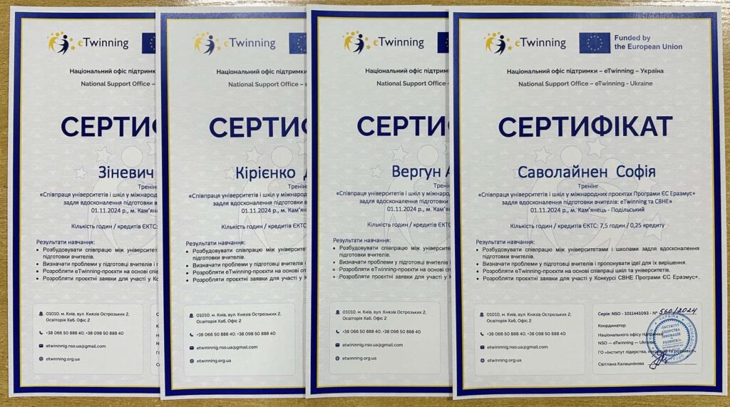 Участь у Всеукраїнській науковій конференції «Формування компетентностей педагога та технологій навчання» та проходження тренінгів |