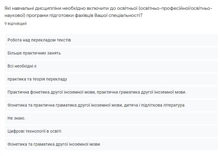 Результати анкетування здобувачів вищої освіти спеціальності 014 Середня освіта Мова і література (німецька)