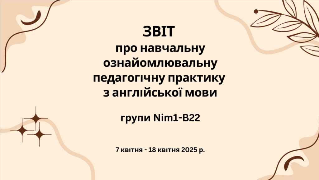 Звіт магістрантів з виробничої педагогічної практики у закладах загальної середньої освіти